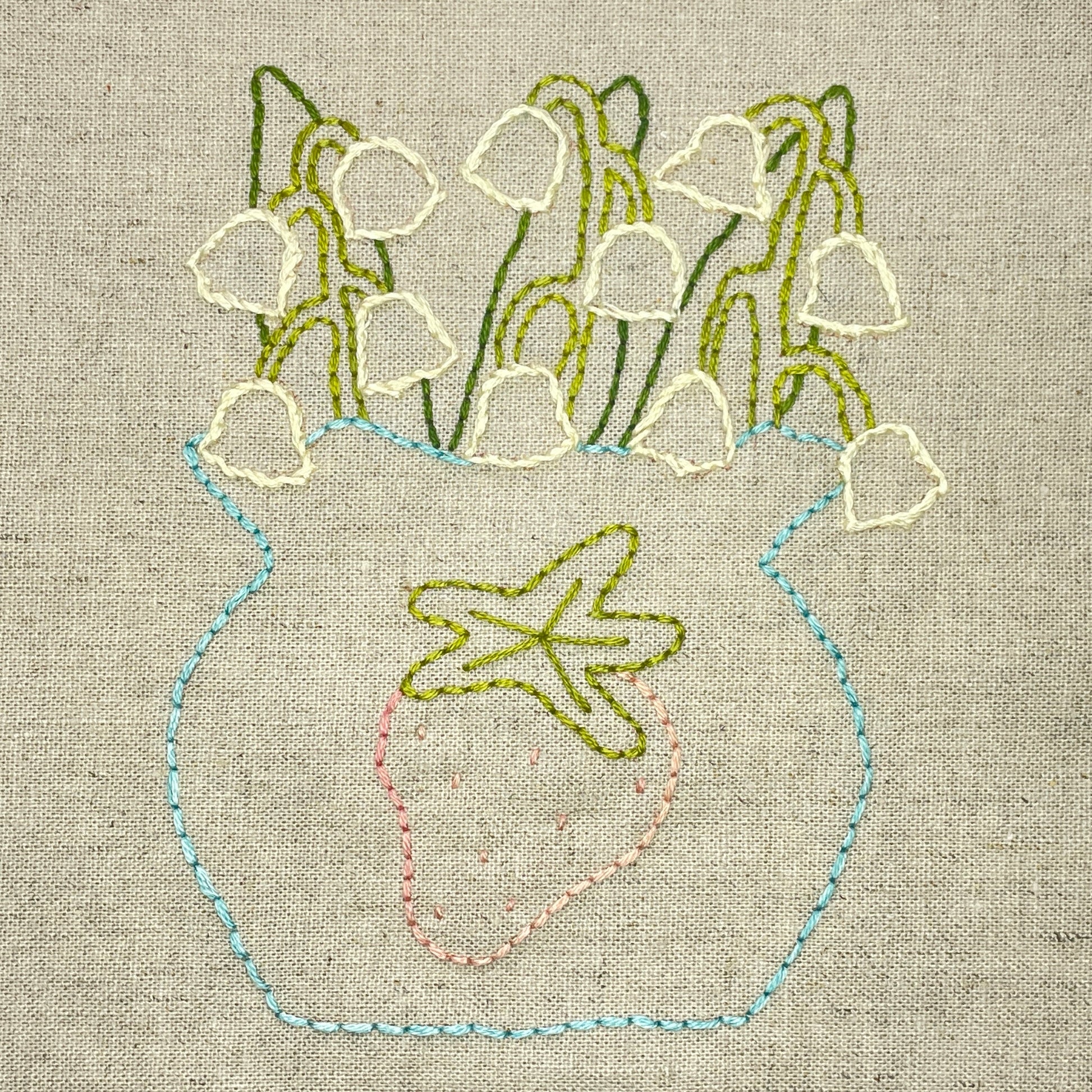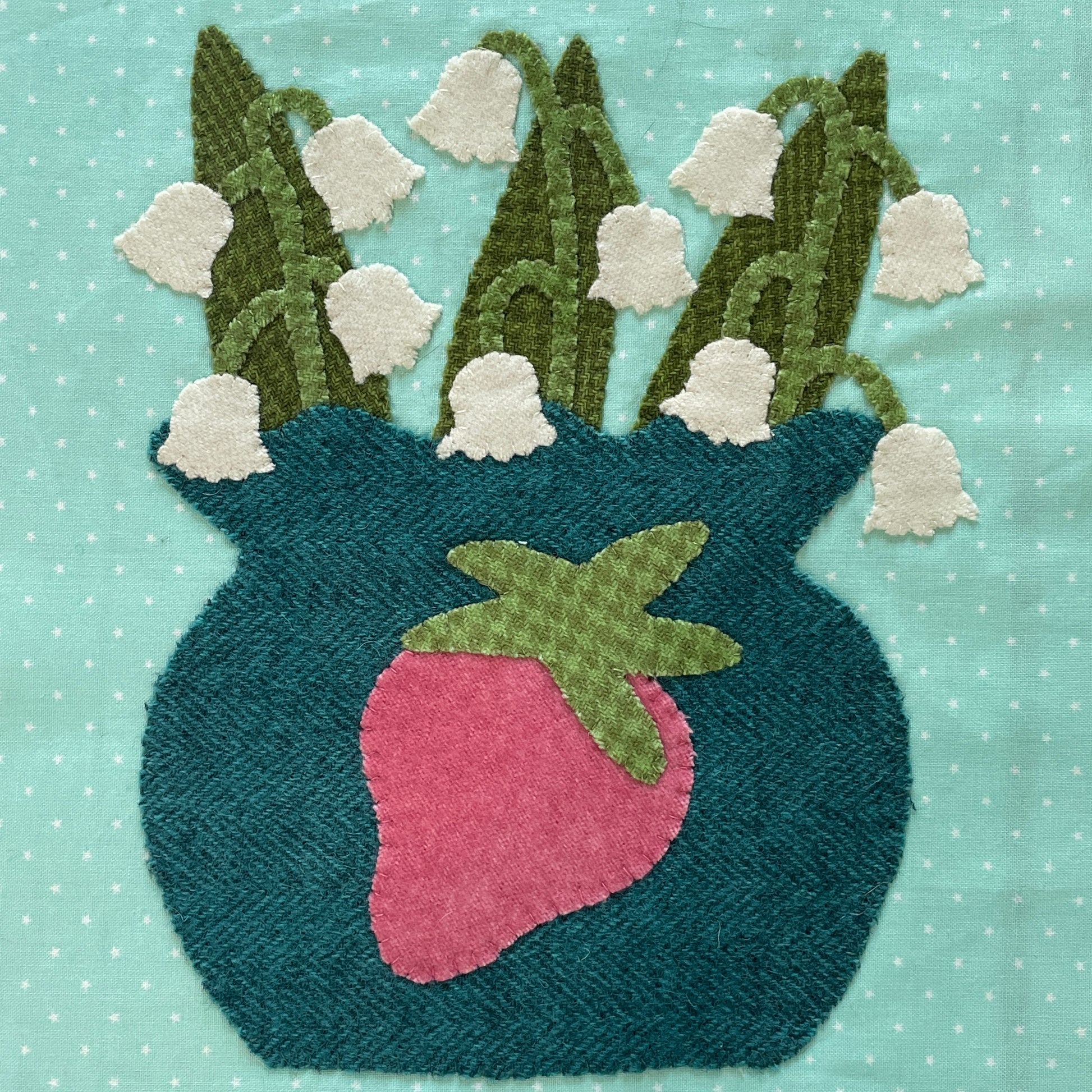 Lily of the Valley is a sweet nod to the delicate birthday flower for May. This appliqué wall hanging features lily of the valley flowers in a vase that is decorated with a strawberry. It can be made with wool or cotton and instructions are given for both.